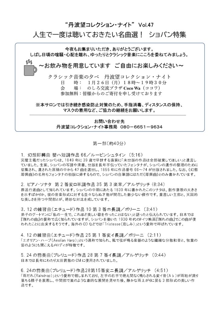クラシック音楽の夕べ 丹波望コレクション・ナイト